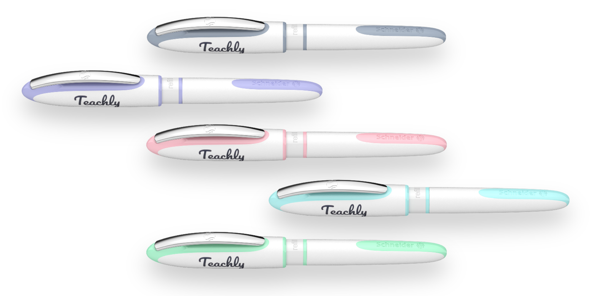 In Kombination aus Superteacher & Superstudent und den 5 Pastellfarben Rosé, Mint, Türkis, Anthrazit & Flieder gibt es mittlerweile 7 verschiedene Varianten des Teachly Tintenrollers. Alle Sets enthalten 7 Nachschub Tintenpatronen, die beliebig getauscht werden können. Aufgrund seiner Ultra-Smooth-Spitze, der ergonomischen Form sowie der schnell trocknenden Tinte sorgen die Teachly Tintenroller für ein ultimatives Schreibgefühl. Aufgrund der wischfesten Tinte sind sie auch perfekt für Linkshänder geeignet.